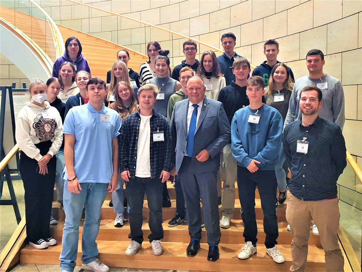 Besuch aus dem Kreis Recklinghausen konnte Josef Hovenjürgen am Donnerstag im Landtag willkommen heißen: Der Sozialwissenschafts-Leistungskurs des Petrinum Gymnasiums aus Dorsten war zu Gast in Düsseldorf, um sich vor Ort über die Arbeitsweise des Parlaments zu informieren.